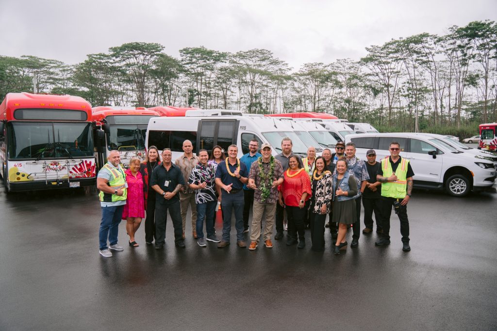 Hawaiʻi County recently conducted a blessing ceremony for 13 more vehicles for its public transportation fleet — nine paratransit vans serving people with disabilities and four all-electric buses.