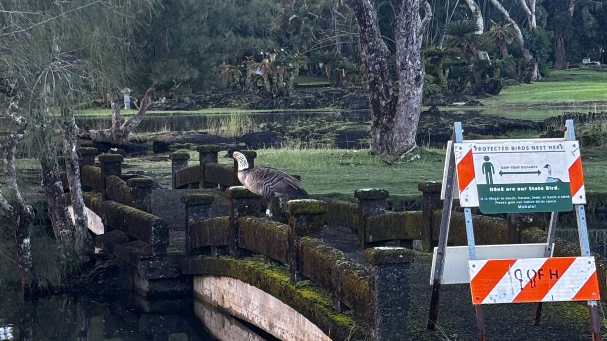 After years of tragic nēnē deaths in Hilo, officials hope that new county regulations that prohibit the feeding of feral animals on county property and increased observation will lead to nesting success at the busy park.
