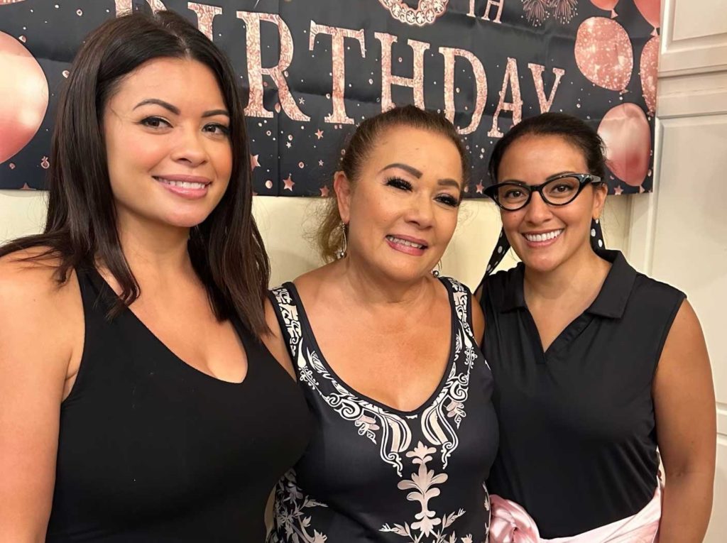 • Theresa Chang with her two daughters, who flew from Oʻahu to attend her graduation ceremony. Her boyfriend’s sister was also here for Chang’s college graduation, traveling from Colorado. (Photo Courtesy: Kūkala Nūhou/University of Hawai’i at Hilo)