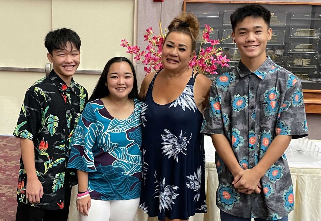 • Theresa Chang with some of her grandchildren, who she encourages to commit to their goals and never give up. (Photo Courtesy: Kūkala Nūhou/University of Hawai’i at Hilo)