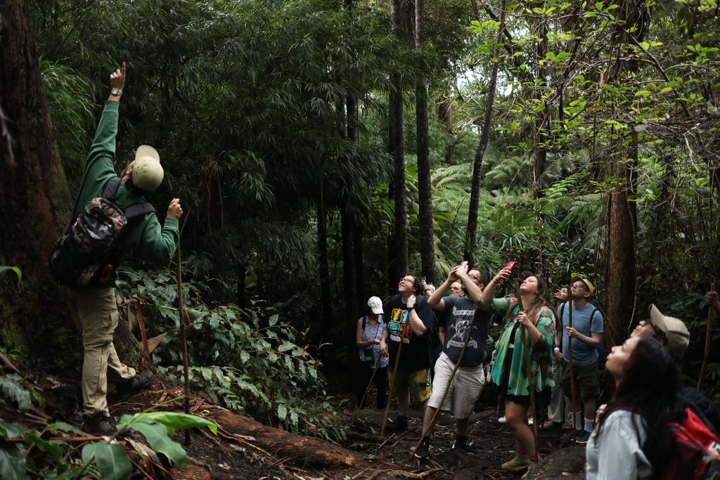 The group took a break from the warm Kona shoreline to travel up the slopes of Hualālai on Saturday afternoon for the cool mist of the Kona Cloud Forest, where naturalist guide Daniel Hirata took them on a 90-minute tour through the family-owned 15 acres of pristine forest.