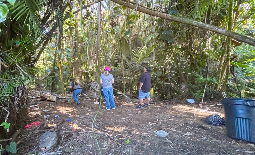 Participants in the 2026 Homeless Point in Time Count on the Big Island head into brush during the first day of this year’s count Monday, Jan. 26, 2026, to count and connect with any homeless people inside. (Screenshot from courtesy video)
