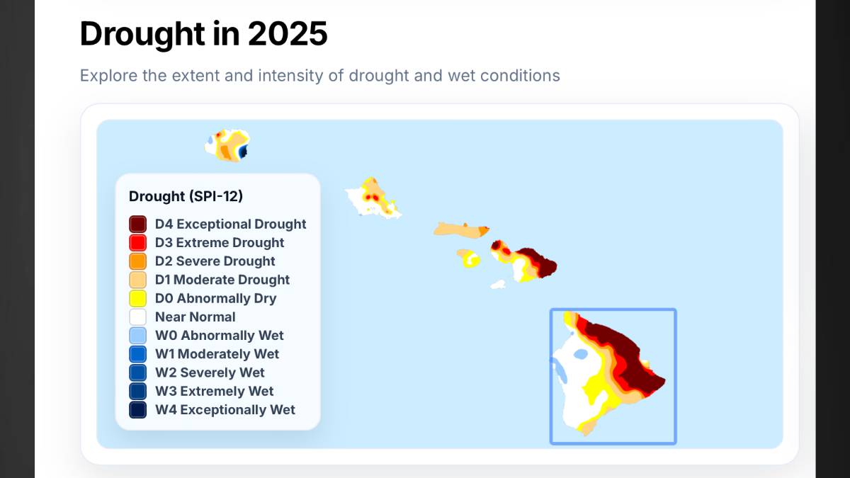 According to the report, 2025 was the second driest year in Hawaiʻi’s 106-year record, with statewide rainfall averaging just 42 inches—about 20 inches below the 30-year average.