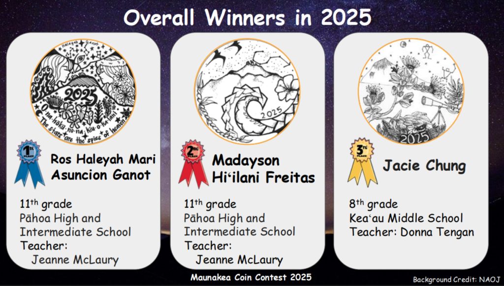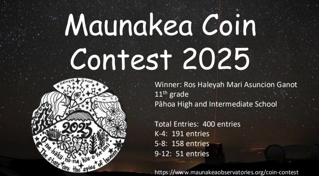 The overall winner of the 2025 Maunakea Coin Contest was Ros Haleyah Mari Asuncion Ganot, then a junior at Pāhoa High and Intermediate School.