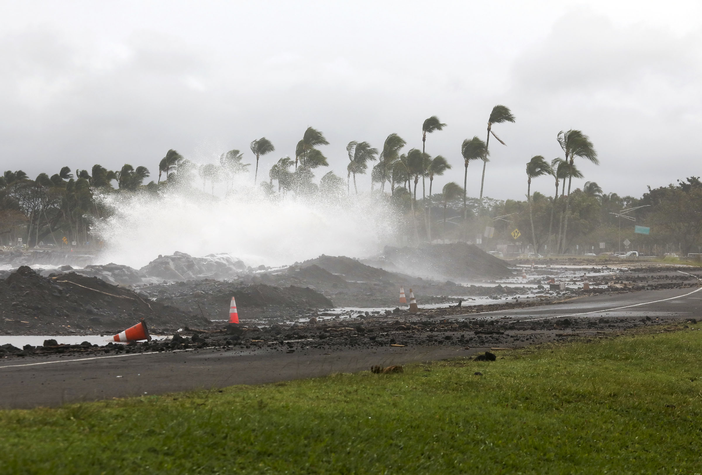 Waves from Hilo Bay crash onto Bayfront Highway in Hilo on the east side of the Big Island. (Photo File: Kelsey Walling)