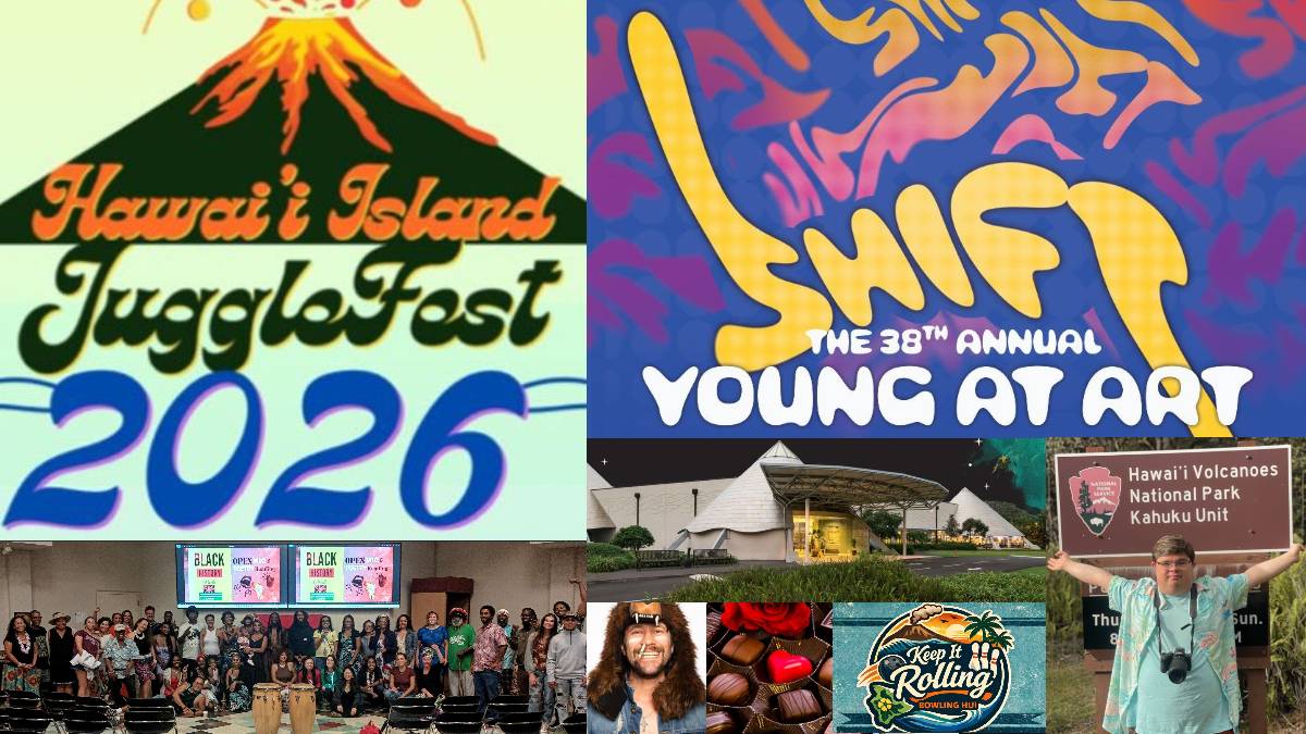 Juggling enthusiasts of all skill levels and ages will have the opportunity to attend various workshops, learn new tricks, improve their technique and expand their juggling repertoire. Limited camping is available. There is a 20-person maximum. There also will be gala shows for the public at 6 p.m. Feb. 21 at Seaview Performing Arts Center for Education in Pāhoa and 7 p.m. Feb. 28 at the Palace Theater in Hilo.