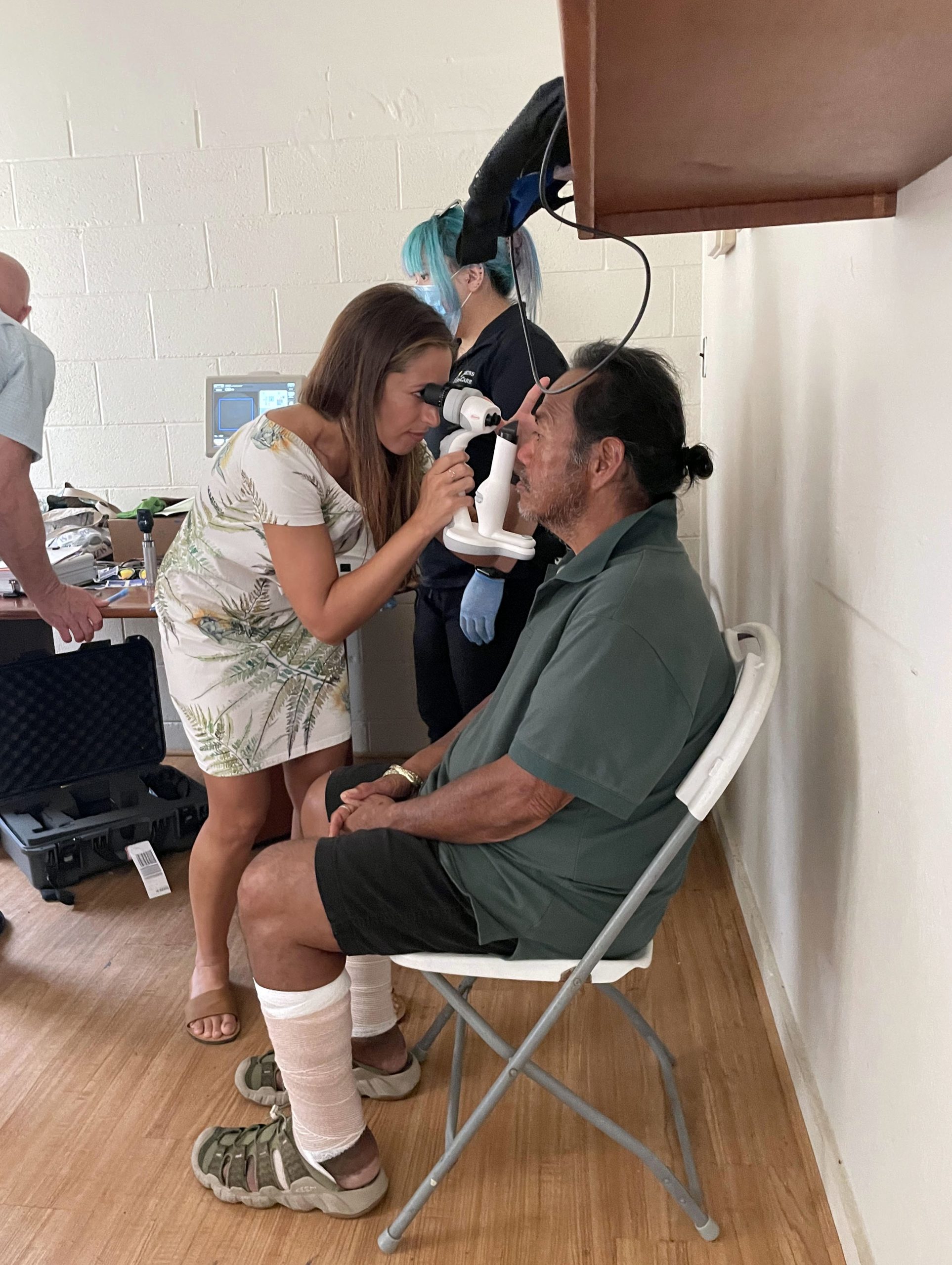 Volunteers from Project Vision Hawaiʻi, the Jenkins Eye Care team, and eye care professionals from the mainland attending a national conference worked together to provide necessary care to 20 unhoused individuals in Kona.