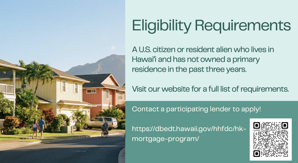 For a full list of participating lenders, eligibility requirements, and other details about the program, visit the Hawaiʻi Housing Finance and Development Corporation website.