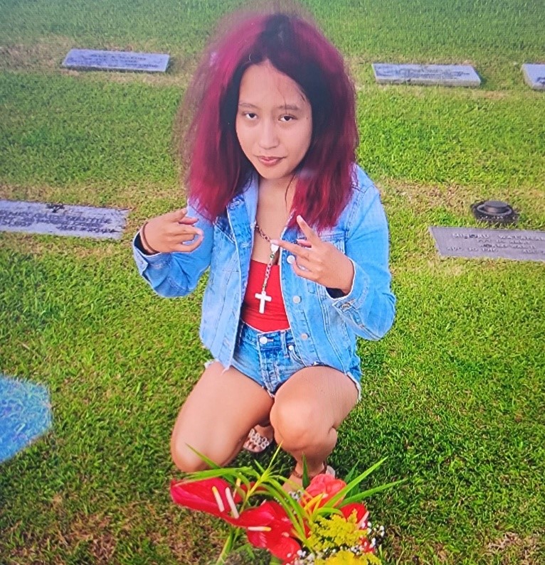 Hauʻoli-Kuoha was last seen in downtown Hilo. She is described as a local, 4 feet 11 inches tall, weighing 110 pounds, with a medium build, brown eyes, and red-dyed hair.