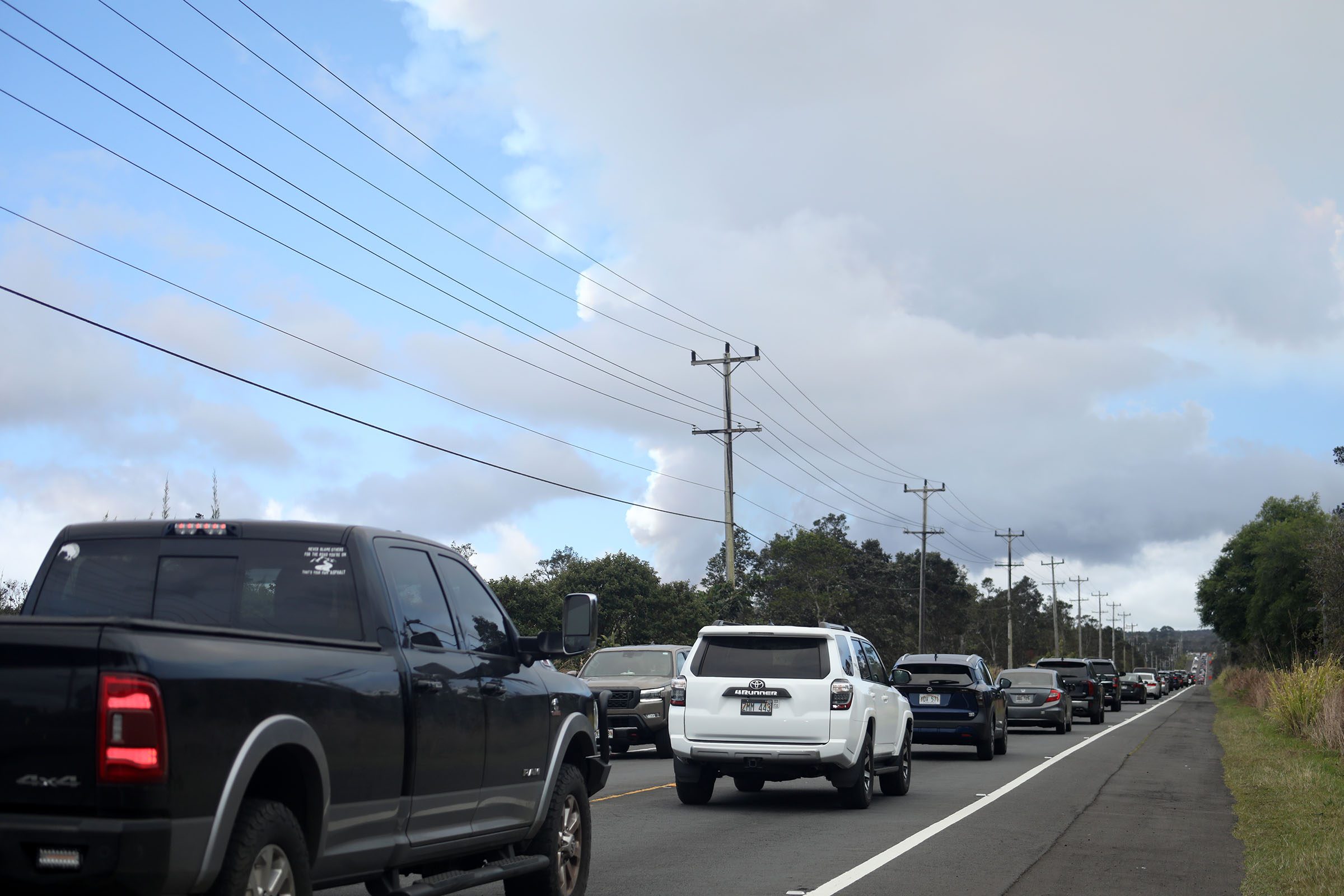 Cars are being turned around at mile marker 24 outside of Volcano Village, which is causing traffic to build on the two lane highway between Mountain View and Volcano. Hawaiʻi Volcanoes National Park remains closed to the public.