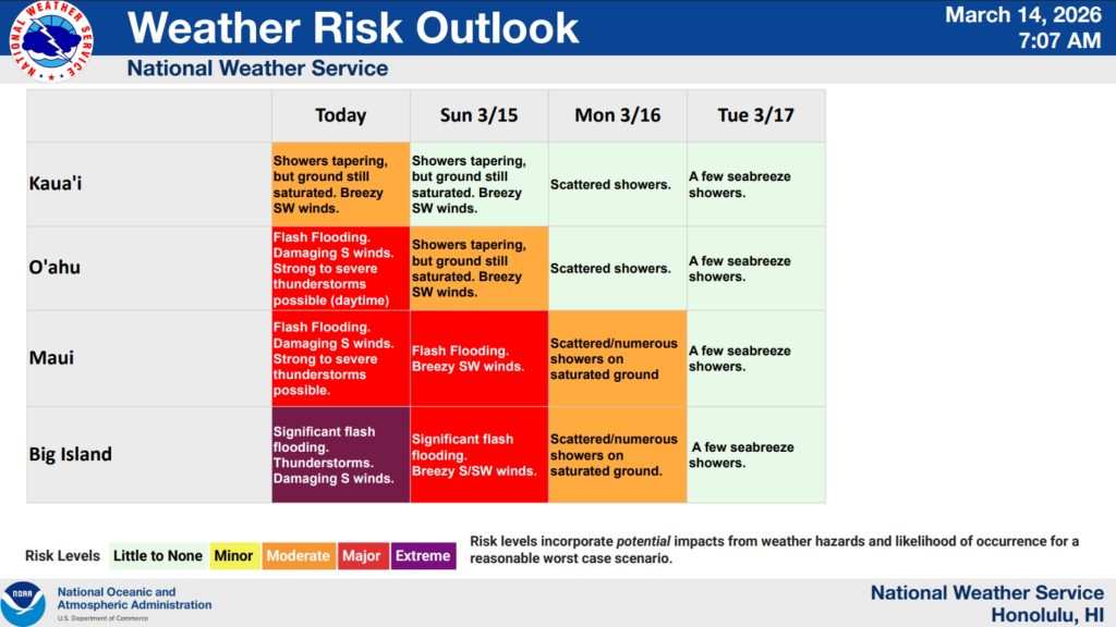 Flood watch: In effect islandwide through Sunday night (March 15).