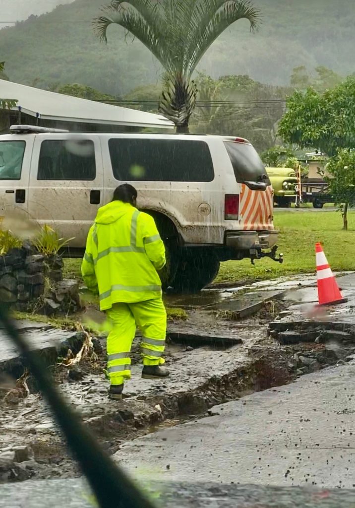 Alameda said in every district on the island, county crews were clearing fallen trees and boulders off roads. But the area particularly hit hard was in the Ka‘ū District.