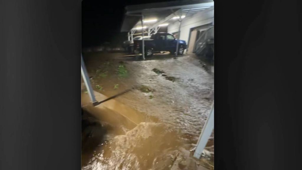 As water rushed over a rock wall and into his property, with at least a foot of water pooling in the carport of his house, Morris evacuated his family of five and three dogs.