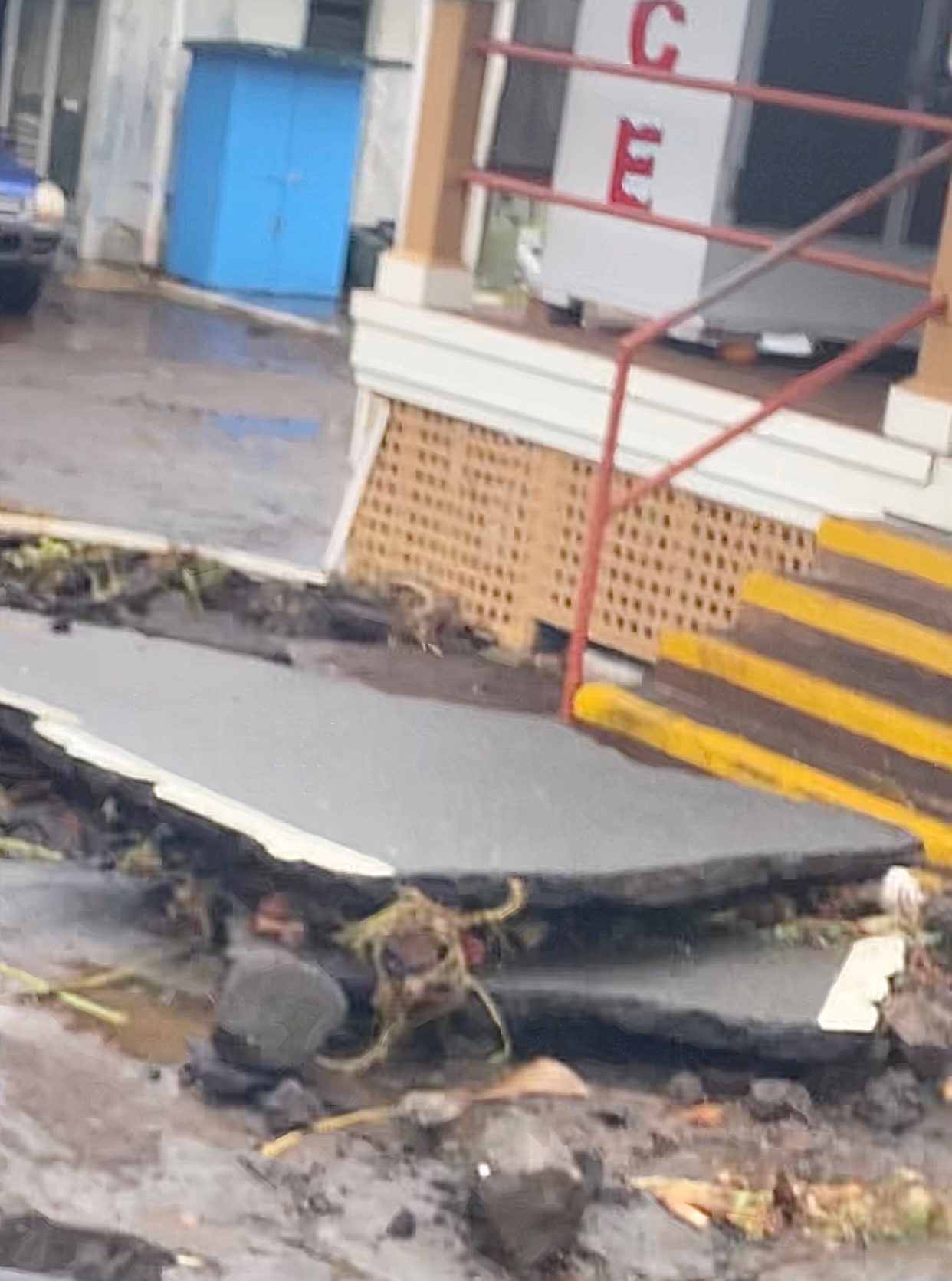 Flooding damage in Ka‘ū in front of the Wong Yuen Store from a kona low storm in March 2026. (File Photo: Courtesy of Christine Inserra)