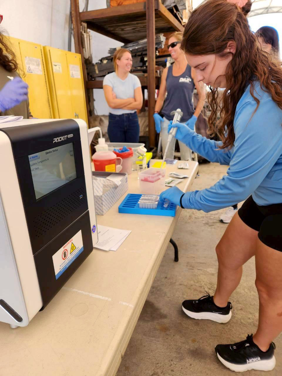 “This is the first application of a field-deployable system for rapid testing for whales and dolphins,” said Kristi West, director of the University of Hawaiʻi Health and Stranding Lab. “It breaks down barriers to detection because it can be used remotely, even without a traditional lab nearby.”