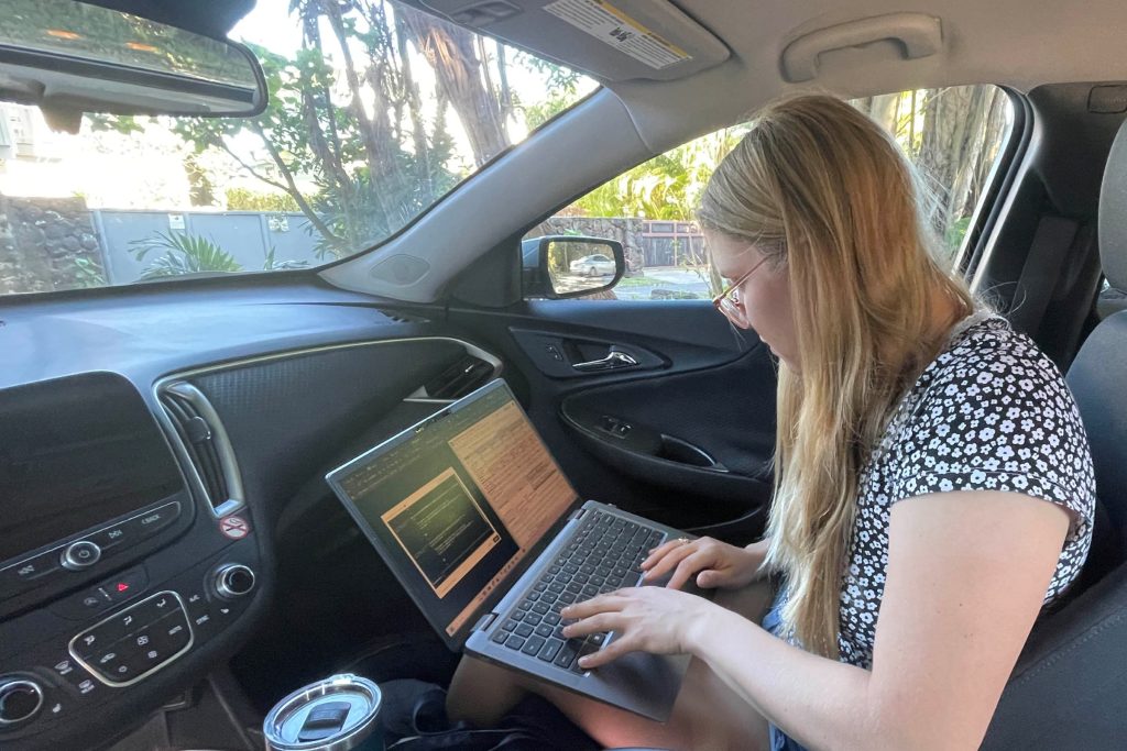 We brought our laptops and sat in the car so Maria could check on her gliders before we walked down to the beach.