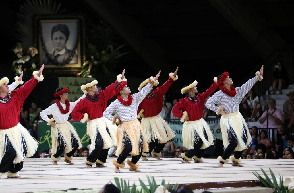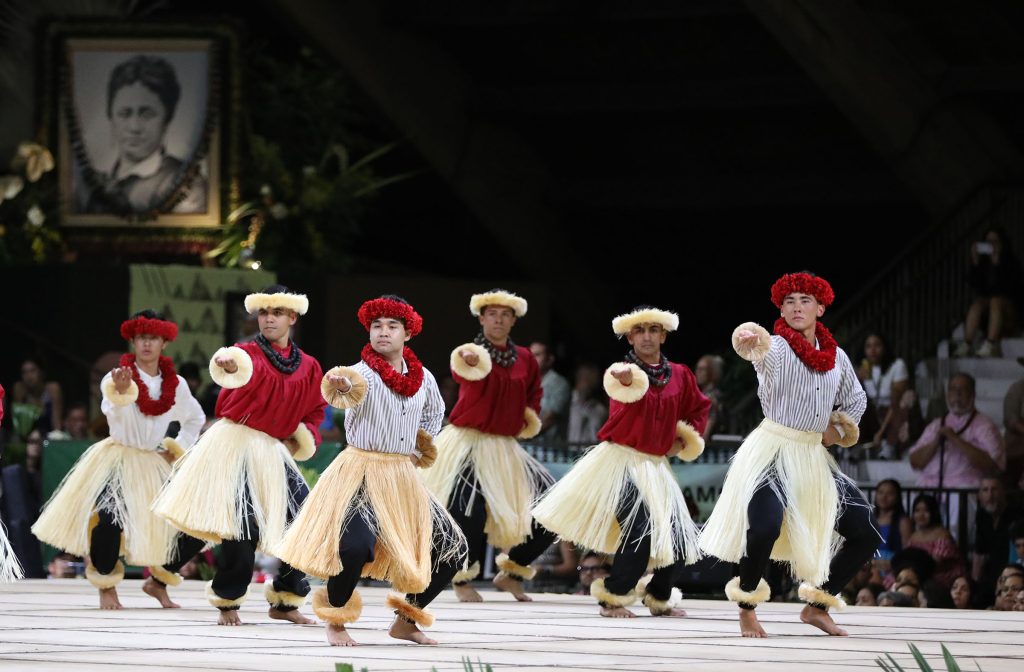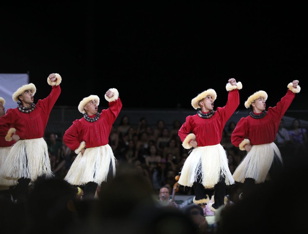 Next on stage was Hālau Hula O Kahikilaulani, which honored the late kumu hula Rae Fonseca, who was also part of the first year of kāne hula in the competition 50 years ago.