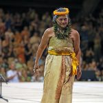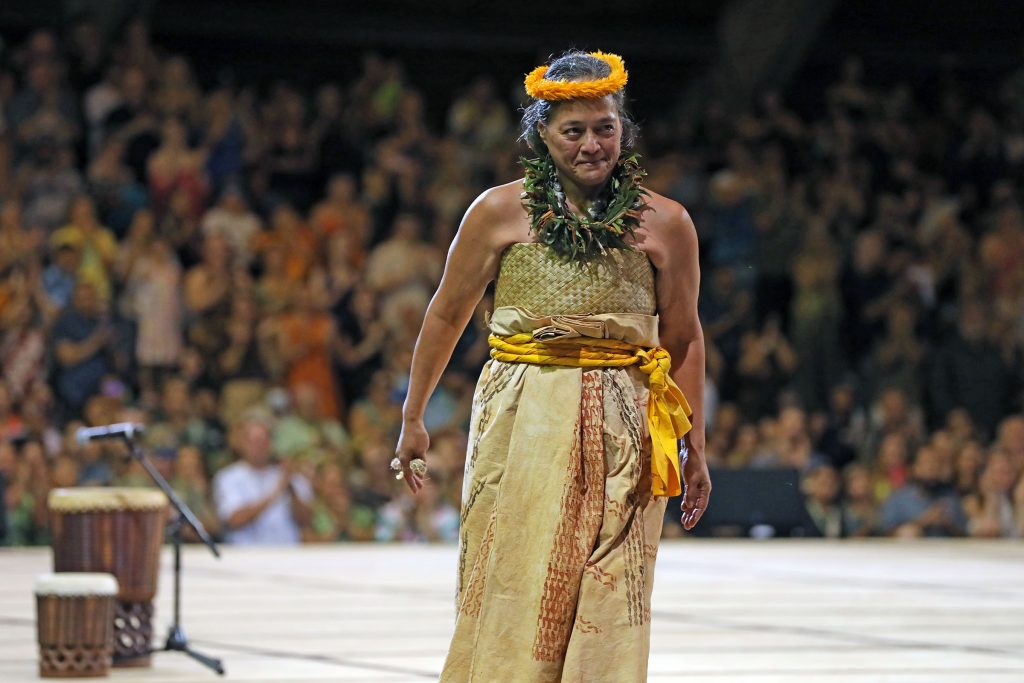 Kumu hula Huihui Kanahele-Mossman has taken on the sole leadership role as kumu hula for the first Merrie Monarch since the passing of kumu hula Nalani Kanakaʻole-Zane. After a solid performance, she received a standing ovation.