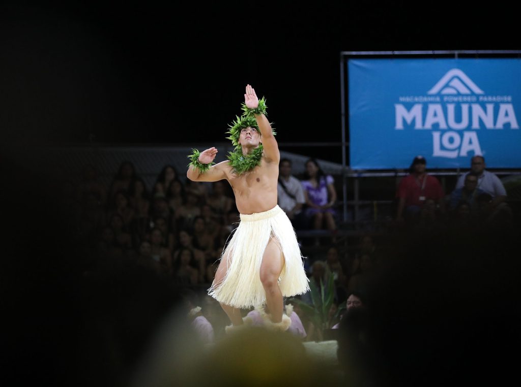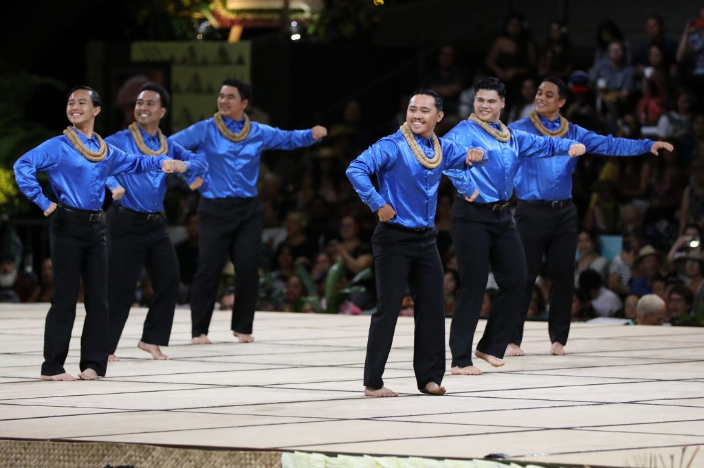 After Hālau O Kekuhi opened the night, the kāne dancers were center-stage as they represented hālau who danced on the Merrie Monarch stage in the early years.