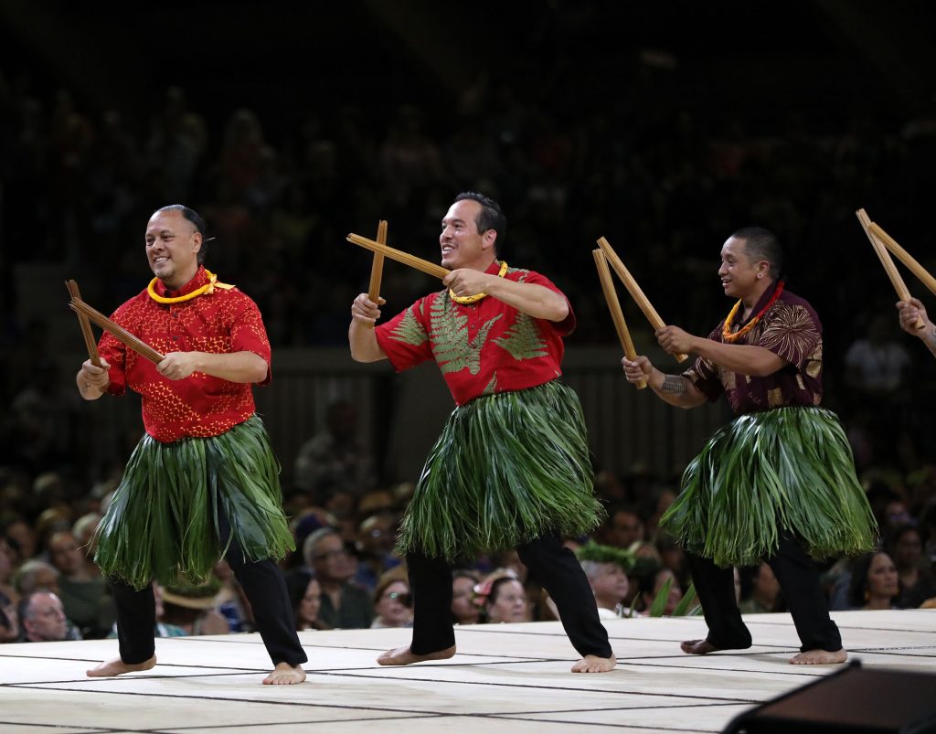 The third hālau were kāne from Oʻahu’s Nā Wai ʻEhā ʻO Puna, the hālau of nā kumu hula Thaddius Wilson and OʻBrien Eselu. Wilson died in 2004 and Eselu in 2012.