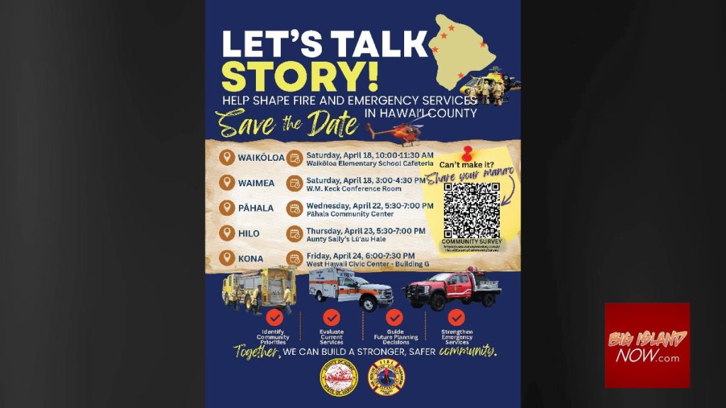 - Pāhala: Wednesday, April 22, 5:30-7 p.m., at the Pāhala Community Center.