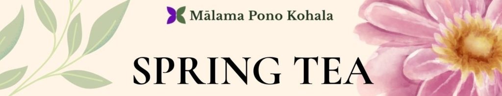 This elegant afternoon event is in support of Mālama Pono Kohala’s mission to prevent and eliminate intimate partner violence. It will include a pi kai cleansing ceremony, live music, tea bundle station and lei making, community reflection activities, survivor and community storytelling, giveaways and more.