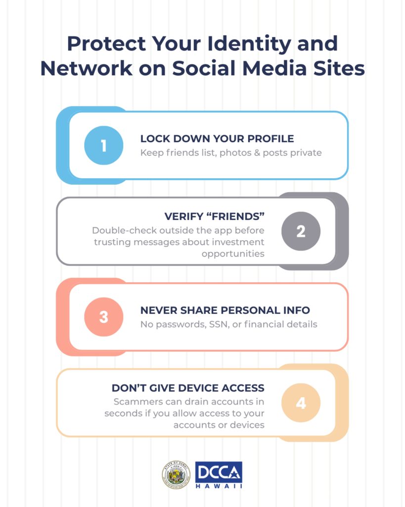 Office of Consumer Protection recommends Hawaiʻi residents stay vigilant to avoid falling victim and protect themselves with the following steps.