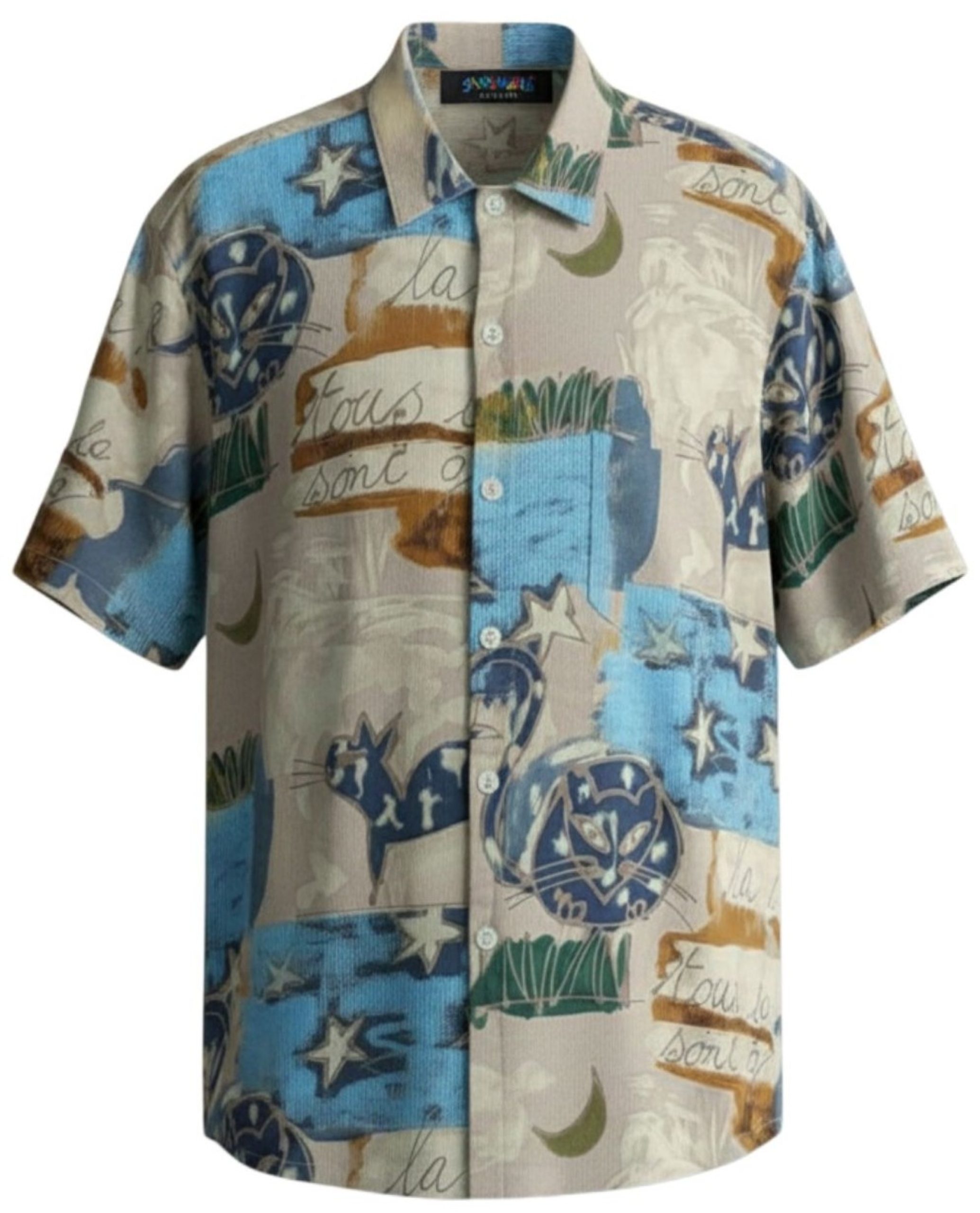 The featured original Jams World vintage artwork in the collection, painted in the 1990s, includes a famous proverb “La nuit, tous les chats sont gris,” which translates to “At night, all cats are gray.”