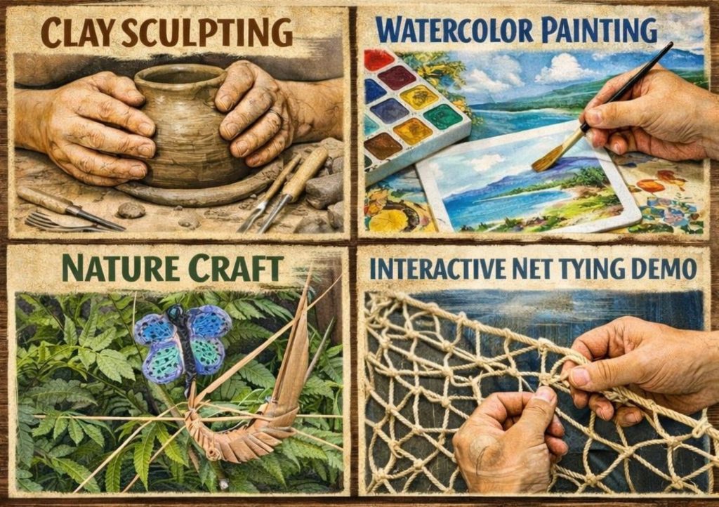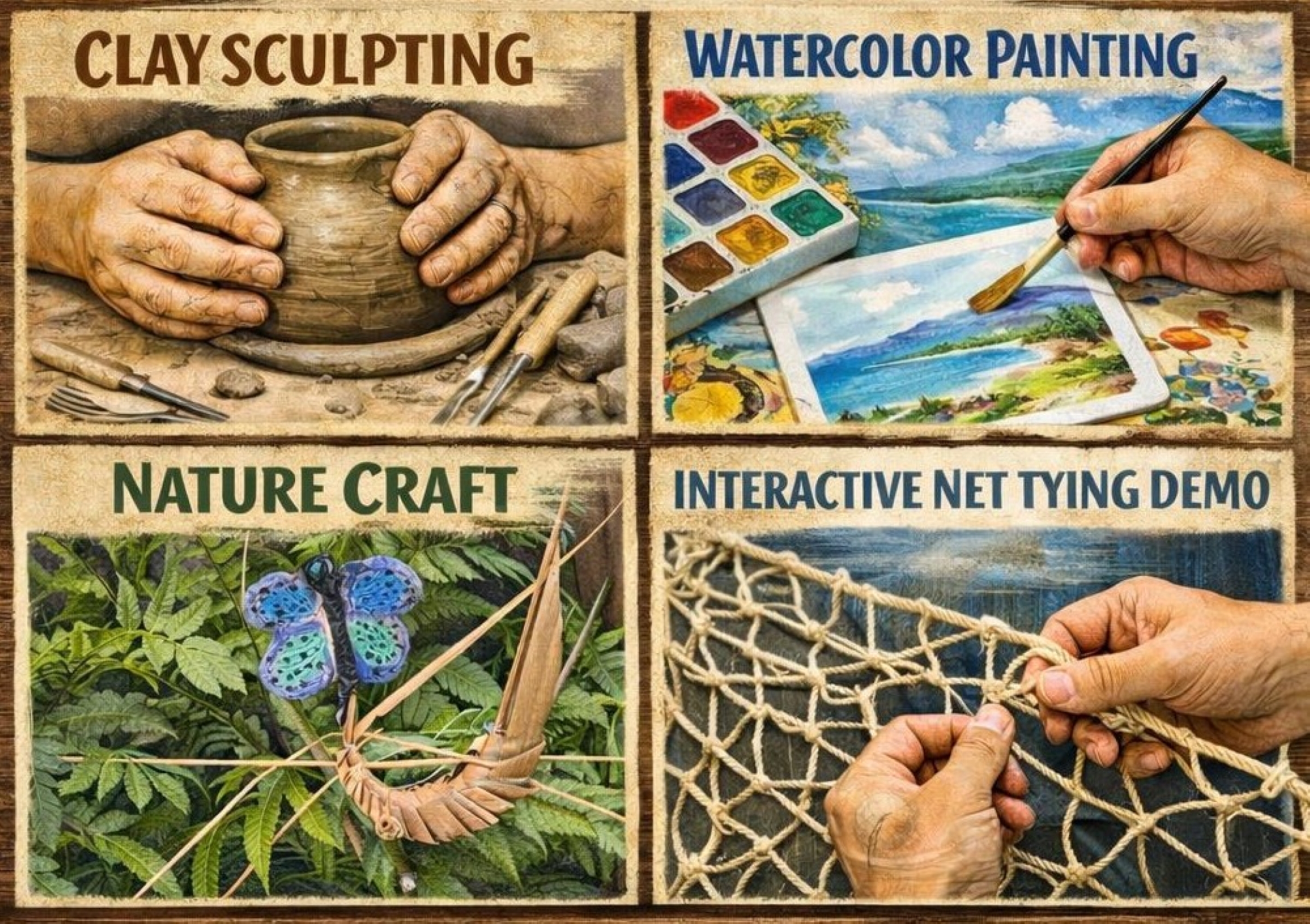 Community members are invited to this free art event to create and learn with local artists. Those who attend can learn and practice clay sculpting, watercolor painting, nature crafts and get an interactive net tying demonstration. Sponsored by Kamuela Center for the Arts, Waimea Arts Council and Kamuela Hardwoods.