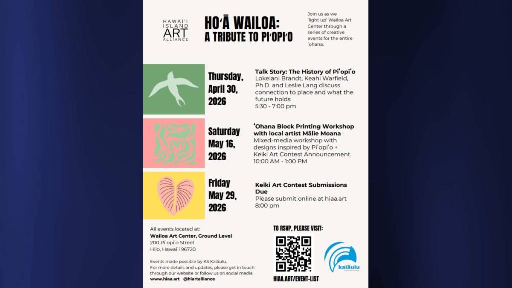 It is hosted by Hawai‘i Island Art Alliance and made possible through a Kamehameha Schools Kaiāulu grant.