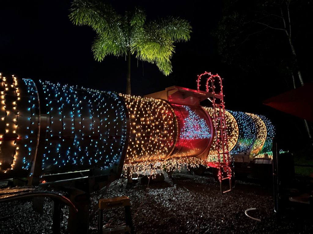 Last year, Waiākea Water of Hilo, through its Kokua Initiative, lit up a company water tanker’s semi-tractor trailer from front to back — and even underneath — with more than 10,000 mostly blue and white string Christmas lights.